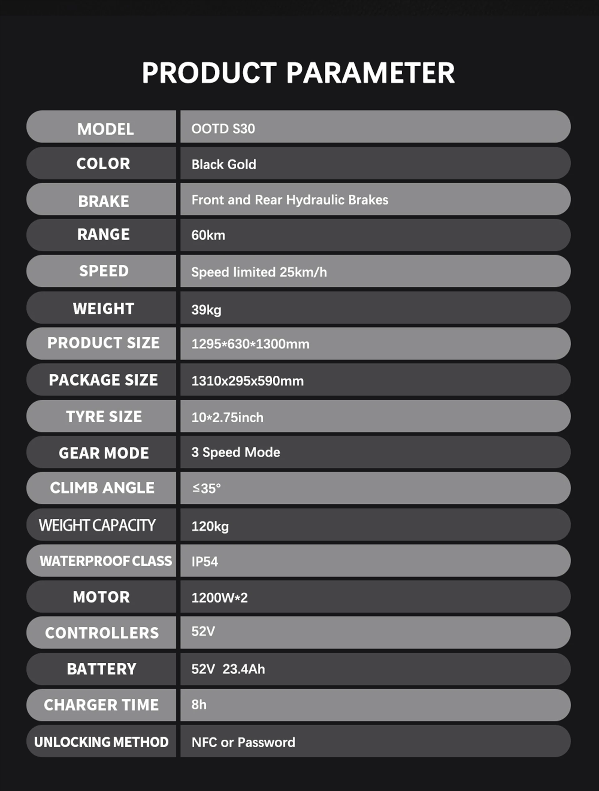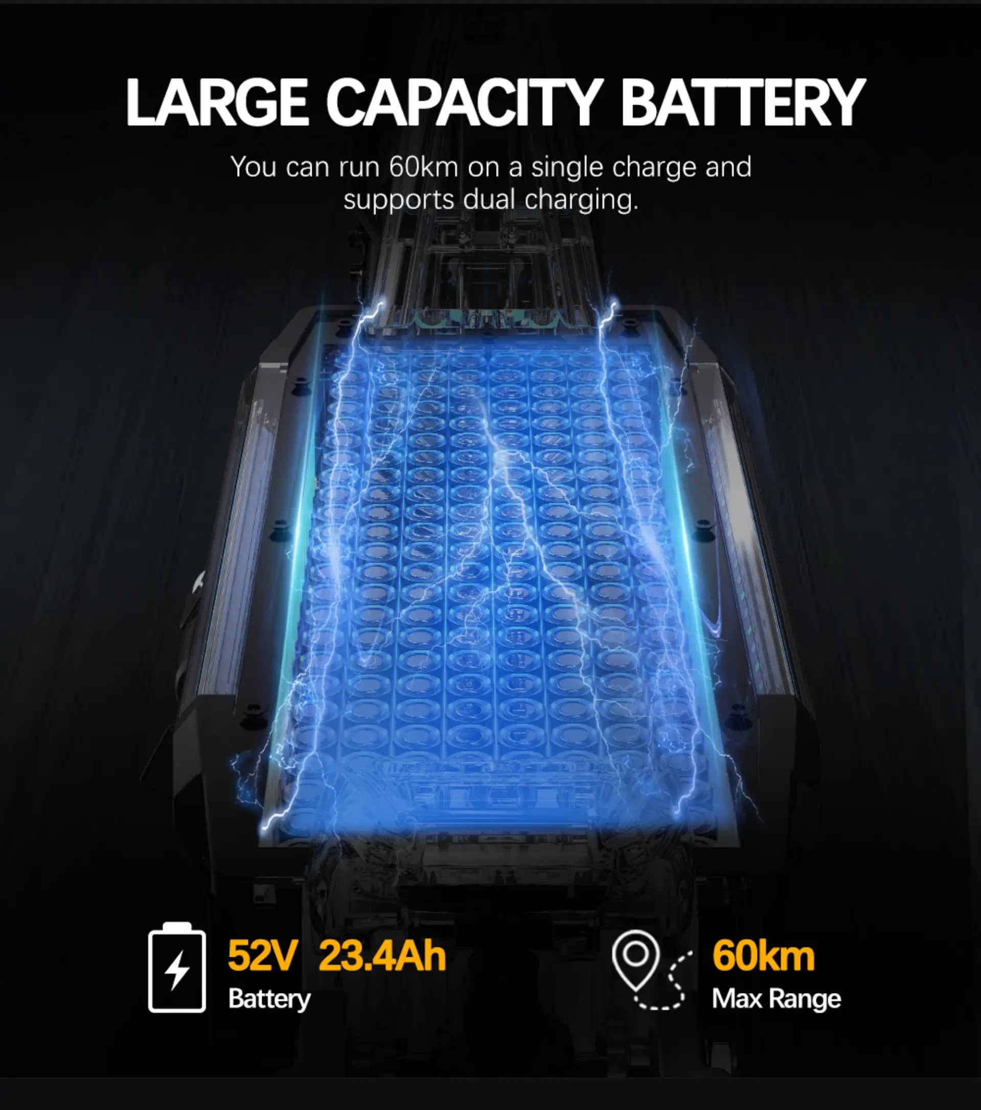 1200W*2 Dubbelmotor | 52V 23,4AH Batteri | 55 km/h Hastighet | 70 km Räckvidd